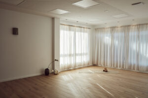 Der lichtdurchflutete, ca. 60 Quadratmeter große Raum sorgt für eine angenehme Atmosphäre und lädt zum Wohlfühlen ein. Er ist bestens ausgestattet mit Yogamatten, Bolstern, Blöcken, Decken und Gurten – perfekt für Yoga, Meditation oder andere Kurspakete. Zudem steht dir eine BOSE Music Box zur musikalischen Untermalung zur Verfügung.